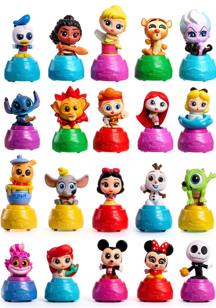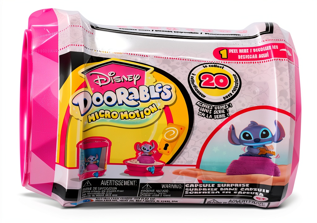 Disney Doorables Micro Motion Capsules offer an exciting blend of surprise and animation, featuring 20 possible Disney characters such as Mickey Mouse, Minnie Mouse, Donald Duck, Stitch, Dumbo, Jack Skellington, Ariel, Winnie the Pooh, Snow White, Olaf, Mike Wazowski, and Cheshire Cat. Each capsule is designed with a blind-bag style, measuring 4.38 x 3 x 3 inches and weighing 3.2 ounces, and includes 2 LR44 batteries for immediate use. The figures stand approximately 1.5 inches tall, showcasing Doorables’ signature stylized details and glittery eyes, with materials engineered for durability and safe play. Released by Just Play in August 2024, this product is recommended for children ages 36 months to 12 years, combining compact dimensions with vibrant, motion-activated fun.