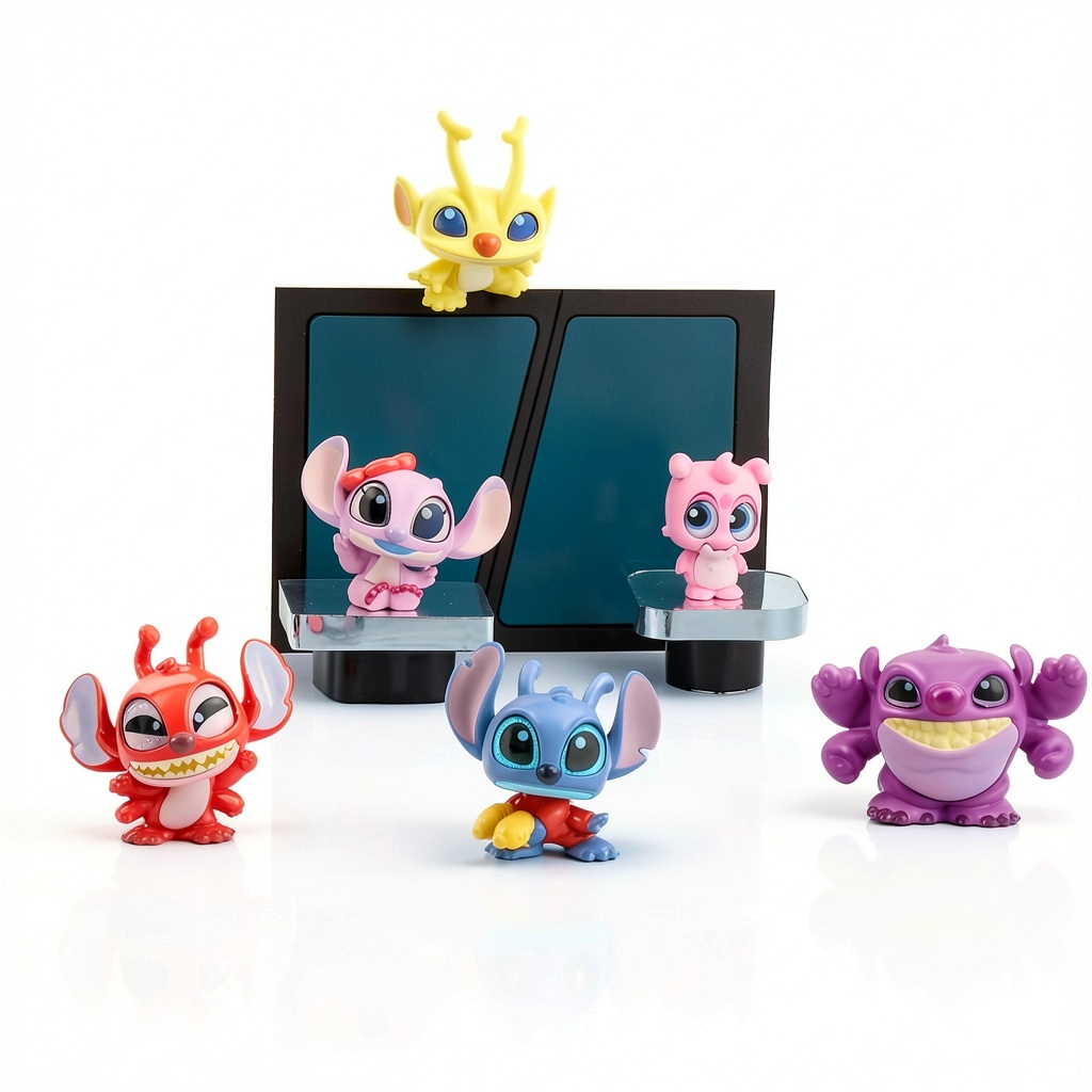 There are 9 exclusive figurines in the Disney Doorables Stitch Experiments Collection, featuring characters like Stitch, Angel, and Sparky.