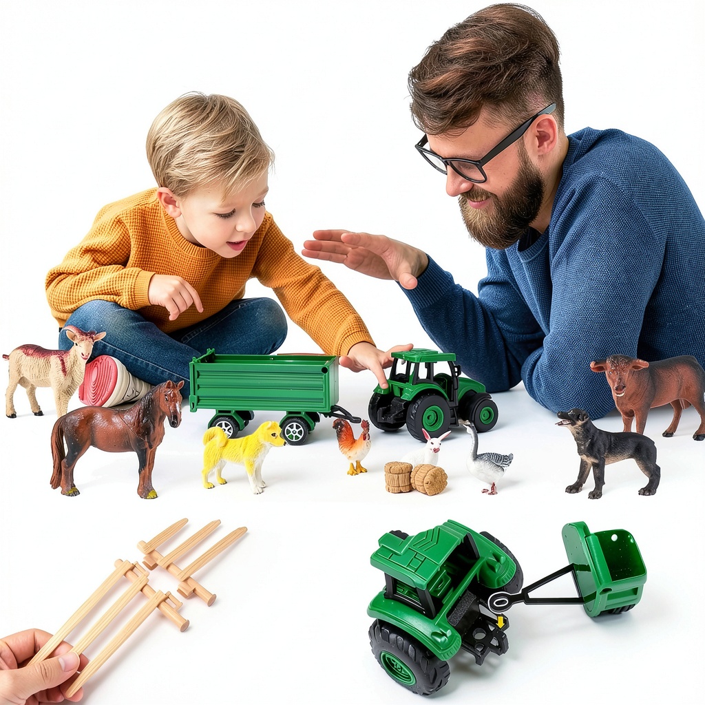 Discover the WAIIW Farm Animal Playset, a comprehensive 23-piece collection designed to bring the farm to life for children aged 3 to 15 years. This set includes a variety of realistic farm animal figurines such as cattle, horses, cows, donkeys, goats, sheep, dogs, pigs, ducks, geese, cats, rabbits, and roosters, along with a tractor toy, fences, hay bales, and a convenient storage box. Each animal is crafted from premium, durable ABS materials and meticulously hand-painted to reflect true-to-life details, ensuring both safety and visual appeal. The package dimensions are 8.82 x 5.87 x 5.67 inches, with a weight of 1.59 pounds, making it sturdy yet manageable for young hands. Ideal for fostering imaginative play, this playset supports educational development while providing hours of entertainment.